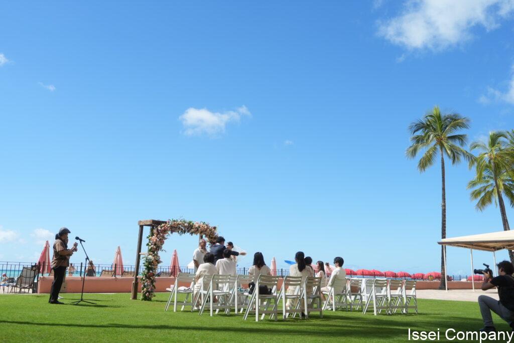 ロイヤル・ハワイアン・ホテルの、オーシャンサイド、”オーシャン・ローン”でのウェディングです。