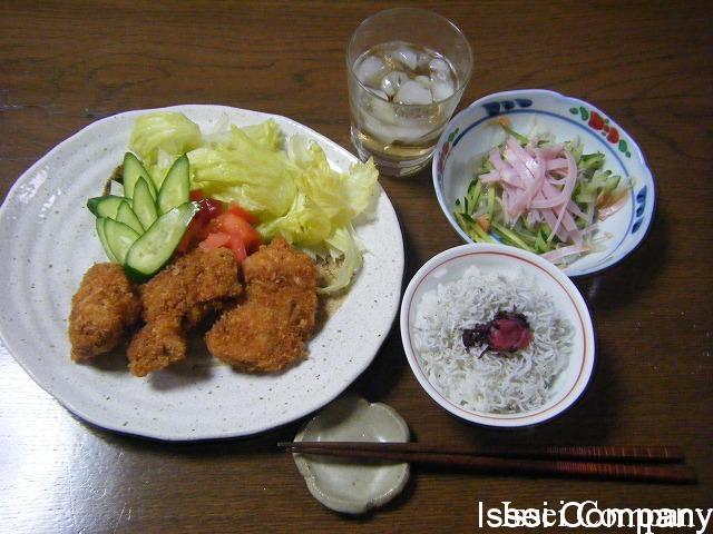 いただいたキュウリは1/3はヒレカツの付け合せに、2/3は千切りにして中華サラダにしました。柔らかくて、瑞々しくて良い香りがします。お父さんのキュウリの味がよみがえりました。