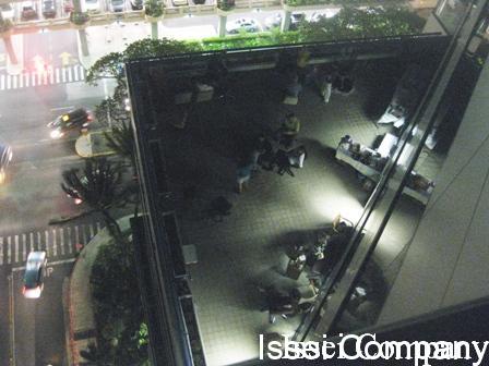 最初の写真は、ビルから見えた、アラモアナショッピングセンターでのバンドの様子です。