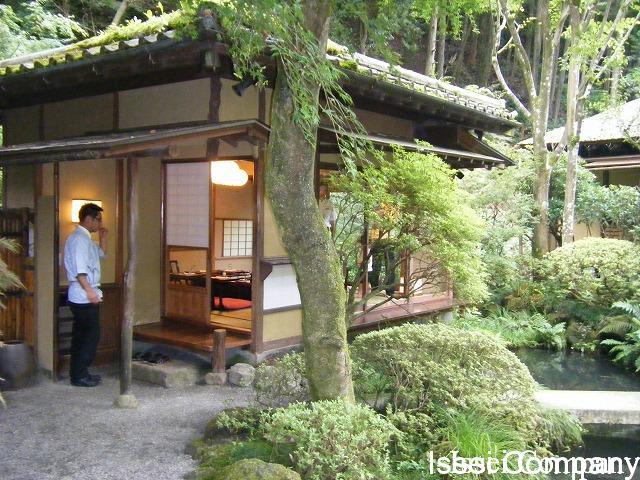 高尾山近くの、お寺での法要とお墓参りの後、近くの有名な鳥料理レストランでお食事会をしました。このお店は山裾の自然の中に、田舎家風の個室が40室もあって、池や水車も美しく、今は「蛍狩りフェア」中です。
