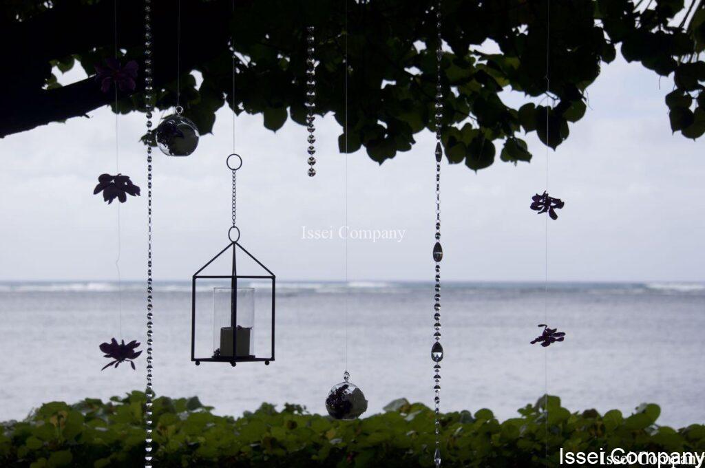 お庭のおっきな樹の前に、セレモニーのセットアップ。