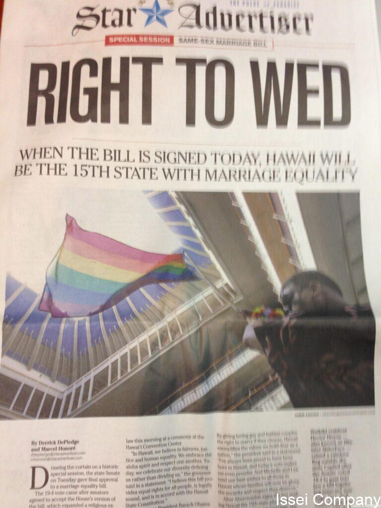 ハワイでの同性婚が、本日正式に認められる法案が、議会で承認されました。