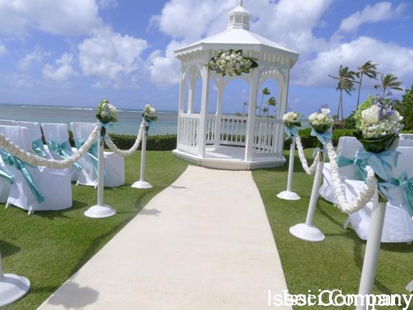 ガゼボ装花も白ベースに、ブルーの挿し色です。