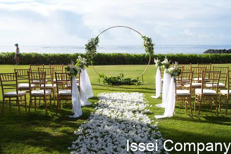 カハラでのウェディングの様子です。 今回はお客様からの特注をうけ、当社のゴールドサークル・アーバーを設置しました。 カハラの風の強さ、装花(豪華で大きい)を考慮し、2セットをアーバーを使って、強度を高めました。 結果、非 […]