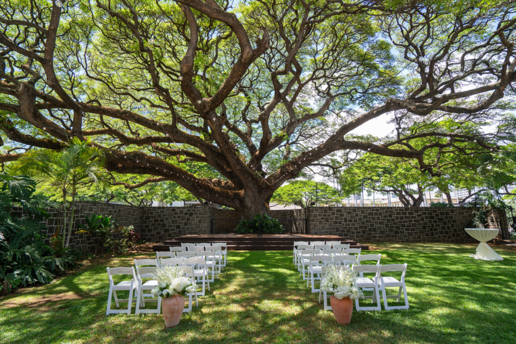 大きな木の下での、ゆったりとした癒しのガーデンウェディングは、素晴らしい思い出を約束してくれます。