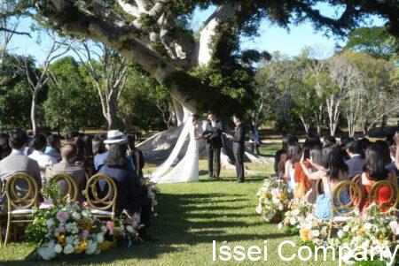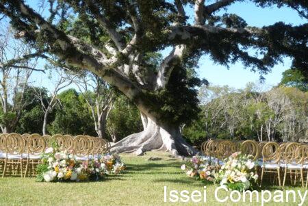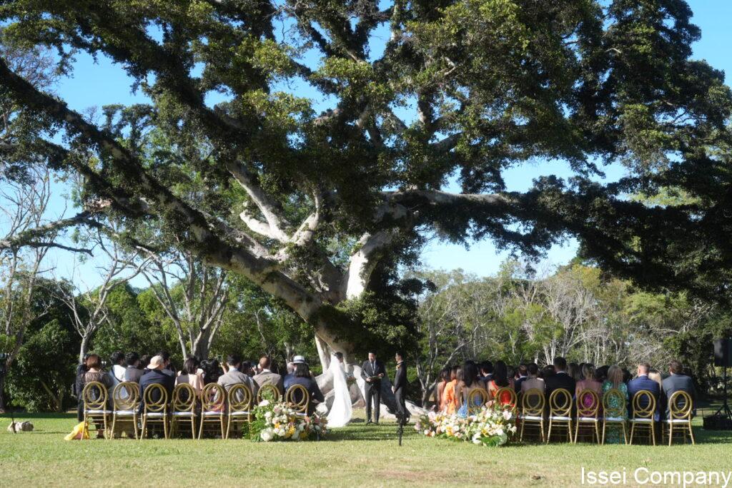 広大な敷地内の大きな木の下に、挙式会場は設置しました。