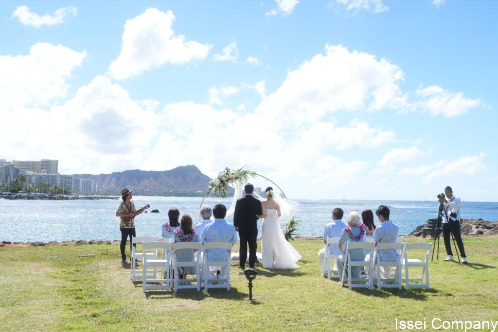 ワイキキビーチとダイヤモンドヘッドをバックに、ハワイらしさ満点の絶景ウェディング!